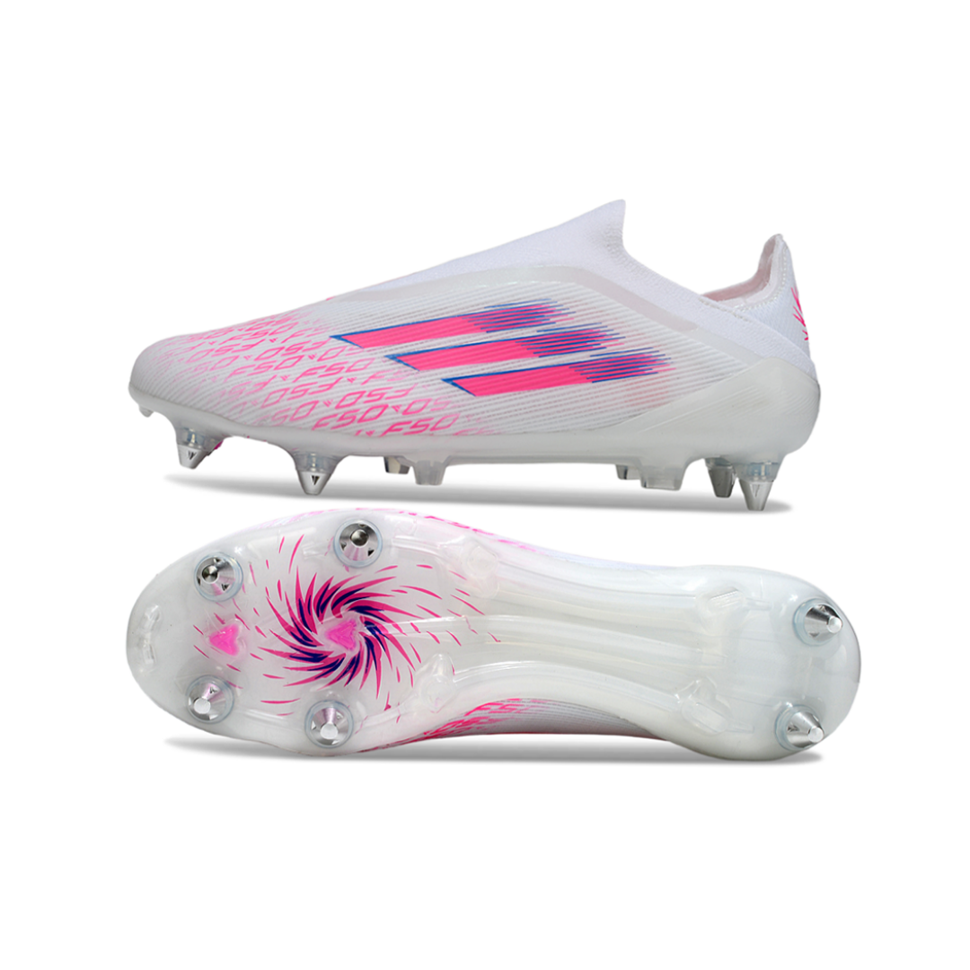 حذاء F50+ بدون أربطة Elite أبيض/وردي - FG