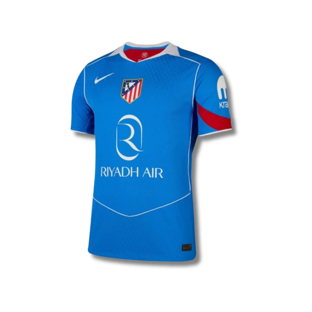 Step into the spirit of the game with the Atletico Madrid 25/26 Third kit, flaunting a bold blue T90 retro design. This jersey brings a nostalgic twist while keeping the energy of modern football alive—perfect for fans who love to stand out both on and off the pitch. Wear the colors of passion and playfulness with a style that scores every time.
