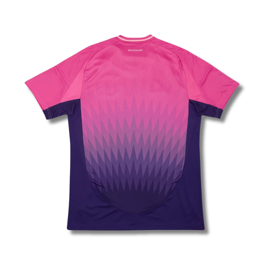 Step into the game with a splash of bold style! The Germany EURO 2024 Away jersey electrifies the field in vibrant pink and purple hues, making sure you stand out while showing your team spirit. Designed for ultimate comfort and a perfect fit, this jersey brings energy and excitement to every match.